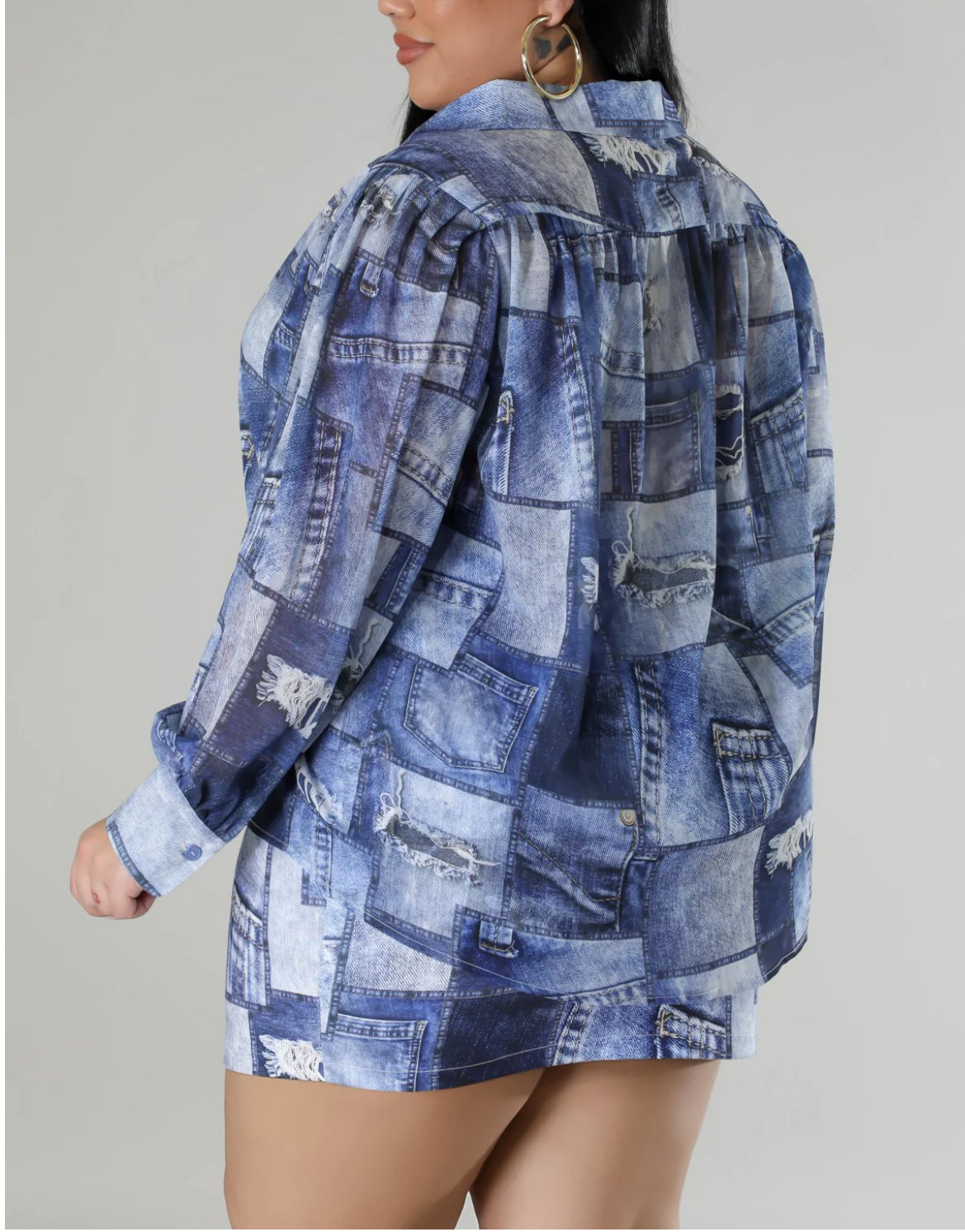 Expertly crafted for a curvy figure, the Never Distress Set brings bold style to your wardrobe. This stretchy skirt set features a classic collar, long sleeves, and button closure for a polished look. The high-waisted skirt boasts an elastic waistband for comfort, with no closure for a sleek finish. Hand wash cold for easy care. Made with 95% Polyester and 5% Spandex. Available in sizes up to 3X.