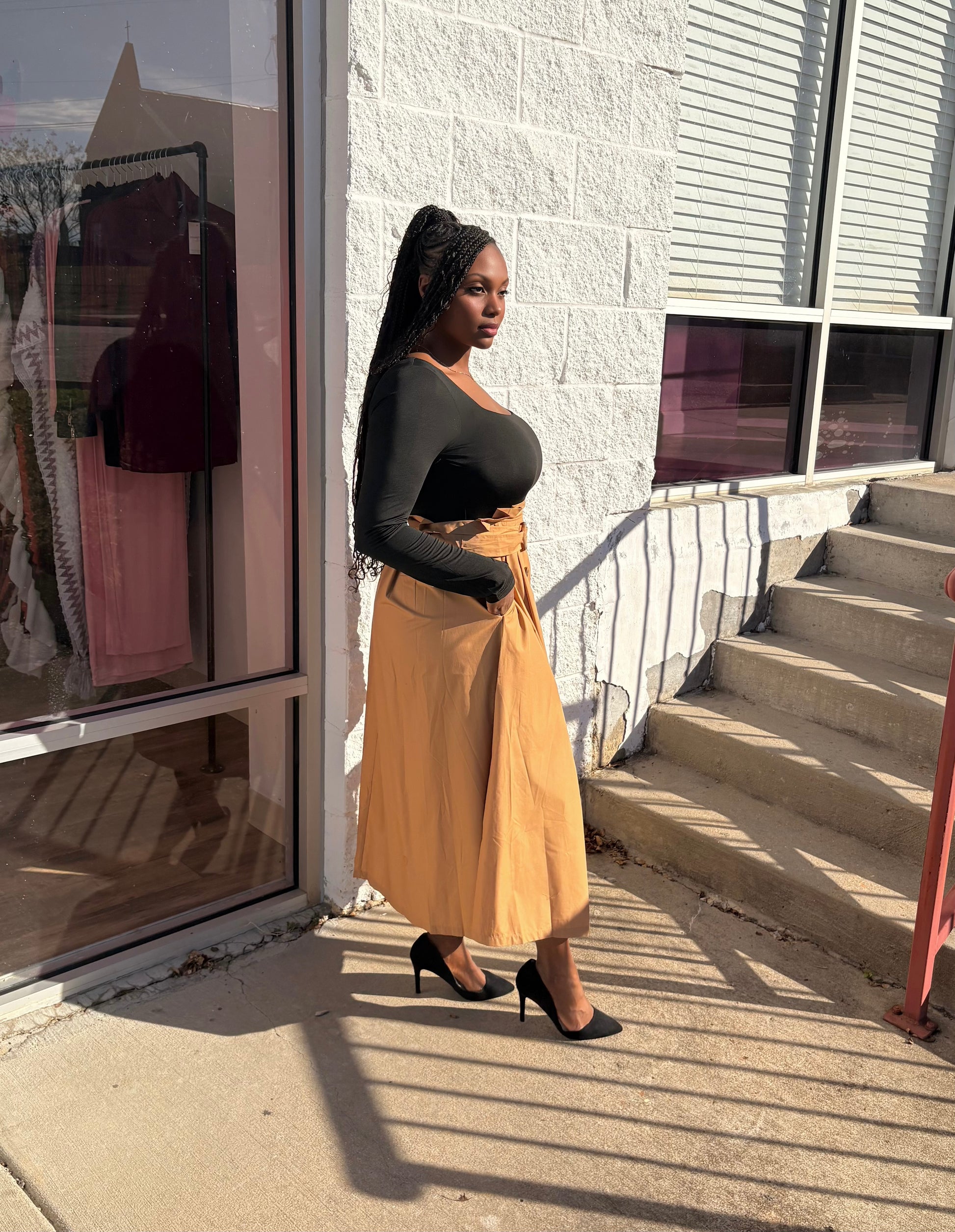 The Picture Perfect Dress features a high-waisted skirt paired with a sleek top, designed to enhance the wearer's silhouette. This combination delivers a refined look suitable for various occasions, allowing for versatility in style while maintaining a sophisticated aesthetic.